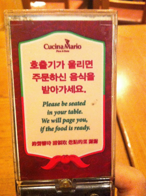 sedang menunggu pesanan pizza di restaurant di Everland, seperti biasa di Korea, banyak kalimat dalam bahasa Inggris yang terdengar aneh atau nggak normal x)))
