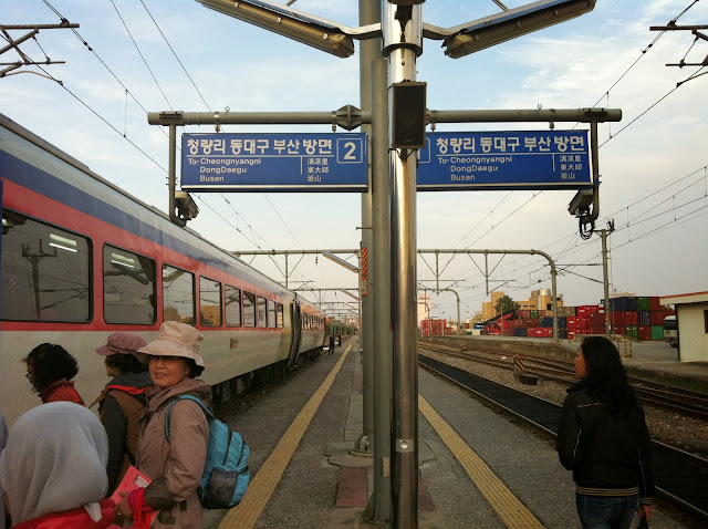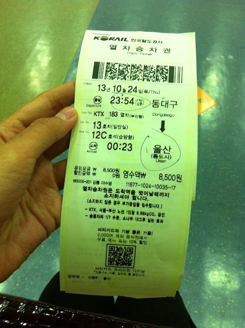 Hari itu saya akan pergi ke Ulsan dan Busan untuk menghadiri trip bersama team KTO Wow Korea. Transportasi yang bisa saya pilih yakni menggunakan bus atau kereta namun harus transfer sekali ke Dongdaegu. Karena meeting pointnya berada di stasiun Ulsan, dan terminal bus Ulsan cukup jauh dari Stasiun Ulsan, maka diputuskanlah untuk naik kereta saja. Saat itu pun sebenarnya saya masih dalam minggu ujian tengah semester, tapi saya mengajukan permohonan kepada 선생님 untuk melakukan early exam, dan sehari sebelumnya saya harus menjalani 3 ujian sekaligus dalam sehari. Jadi ini sebenarnya travelling yang mengganggu kuliah atau kuliah yang menganggu travelling? :p