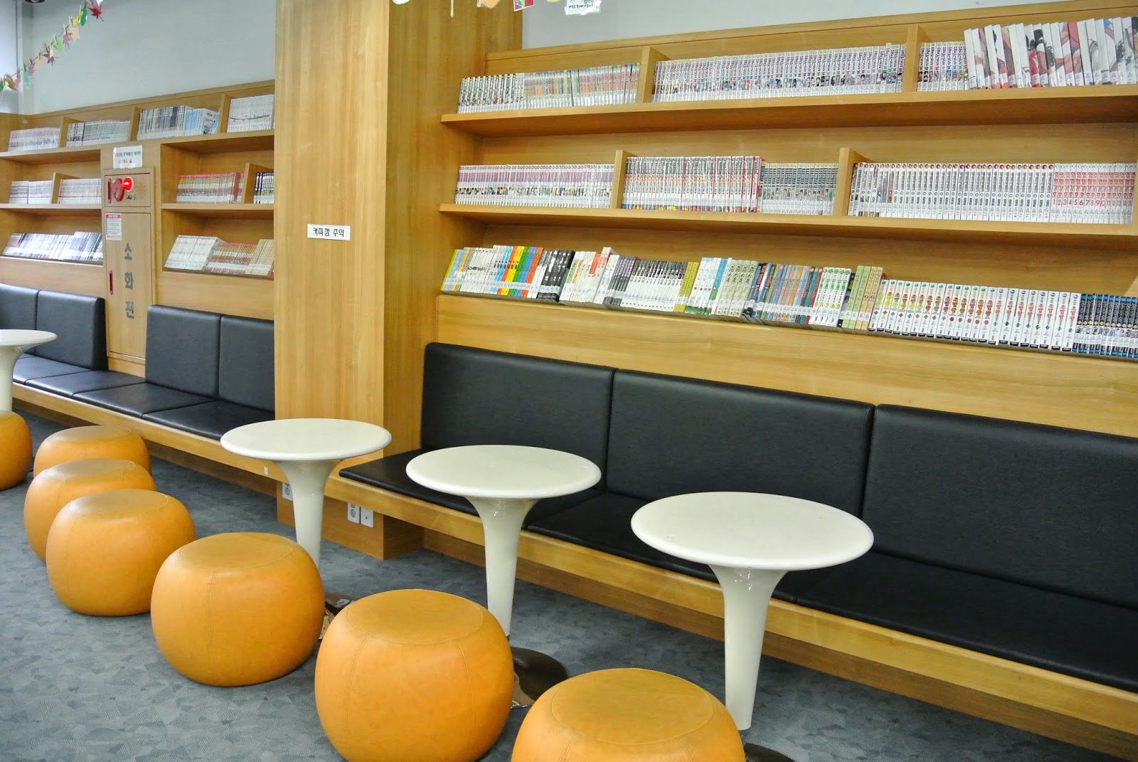 So this is the first floor, the reading hall which I really really adore because it’s so cozy, computer with internet access, and comics, yes! comics!